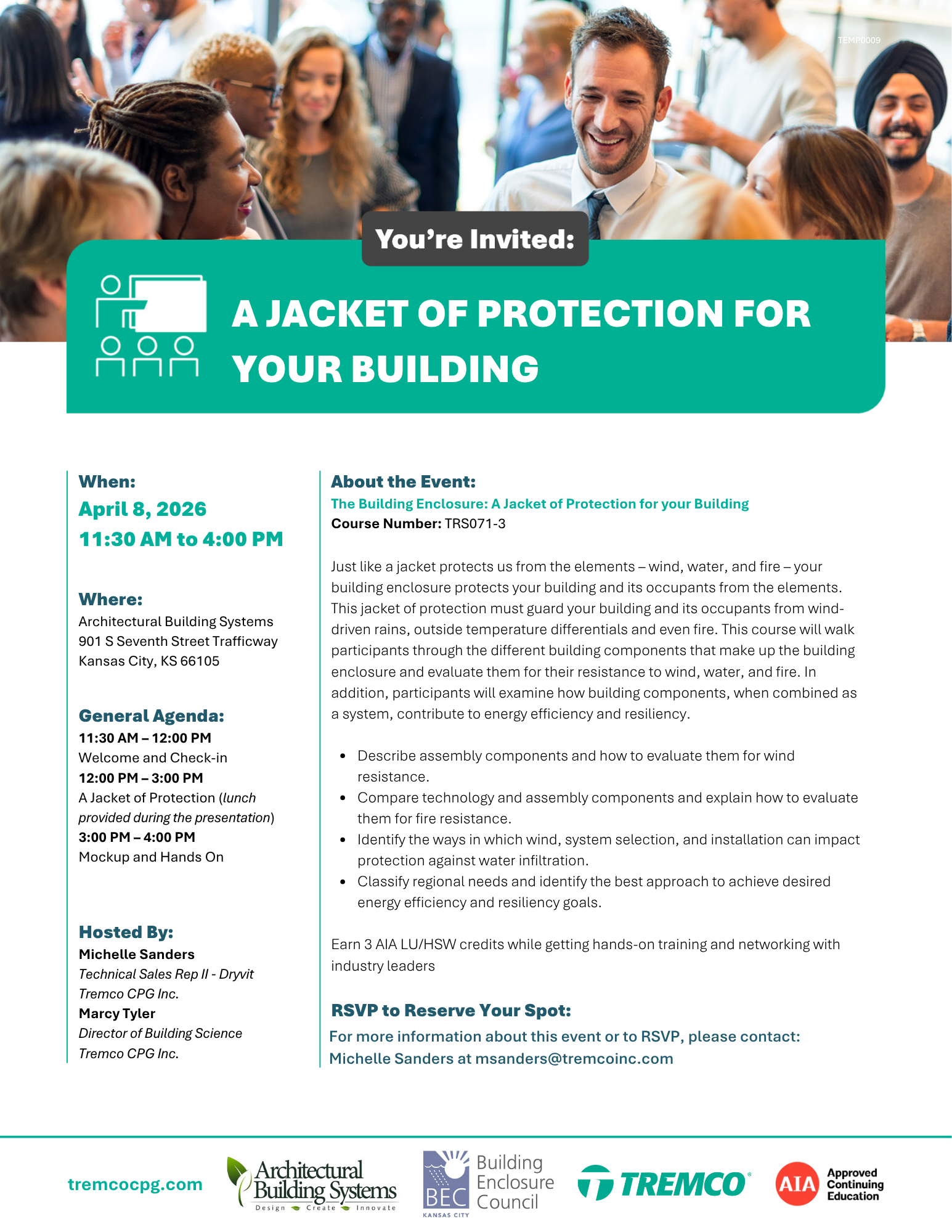 RSVP to Michelle Sanders at msanders@tremcoinc.com
